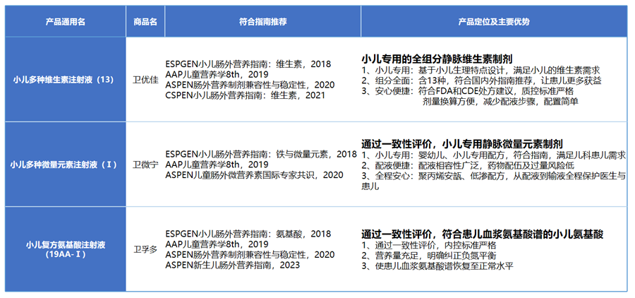 衛(wèi)信康兒科線腸外營養(yǎng)產(chǎn)品特點